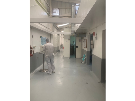 Tiene en su interior todo el montaje para empresa de alimentos, cava de refrigeración, congelación, 3 cuartos de producción con frío, oficina para despacho y administración, en la parte trasera 3 cuartos para oficinas u otros procesos (uno de ellos cuenta con campana de extracción en inox) área de lavado de canastas.